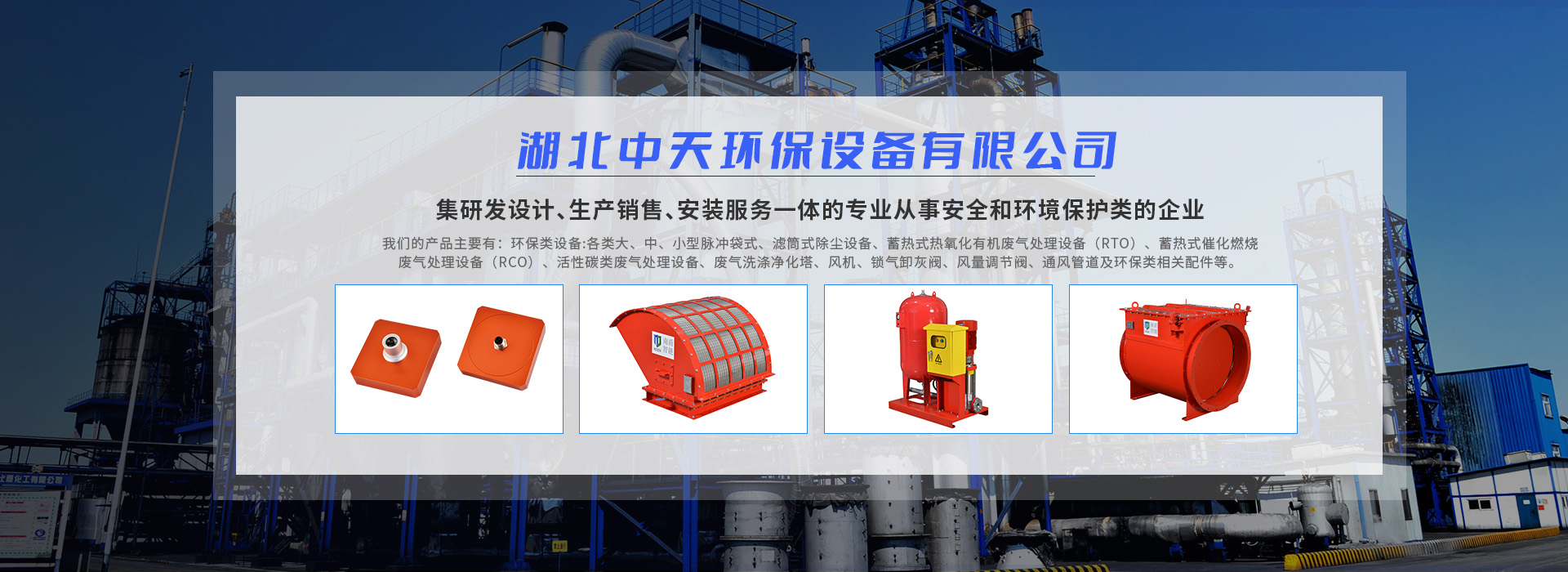 環保類設備:各類大、中、小型脈沖袋式、濾筒式除塵設備、蓄熱式熱氧化有機廢氣處理設備(RTO)、蓄熱式催化燃燒廢氣處理設備(RCO)、活性碳類廢氣處理設備、廢氣洗滌凈化塔、風機、鎖氣卸灰閥、風量調節閥、通風管道及環保類相關配件等。